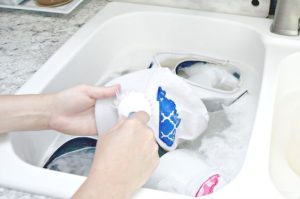 • Hand wash or machine wash (gentle cycle). Fill a basin with cool water and mild detergent. For machine washing, use the gentle cycle with cold water and mild detergent.