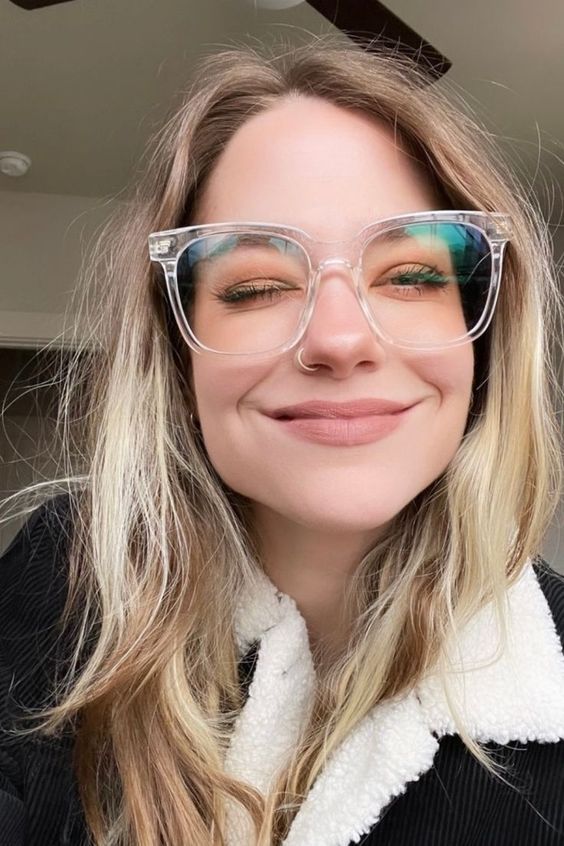 - Contrasting Colors: Make a bold statement by contrasting the color of your eyeglasses with your wig. This works well with clear frames and vibrant wig colors like burgundy or blue.