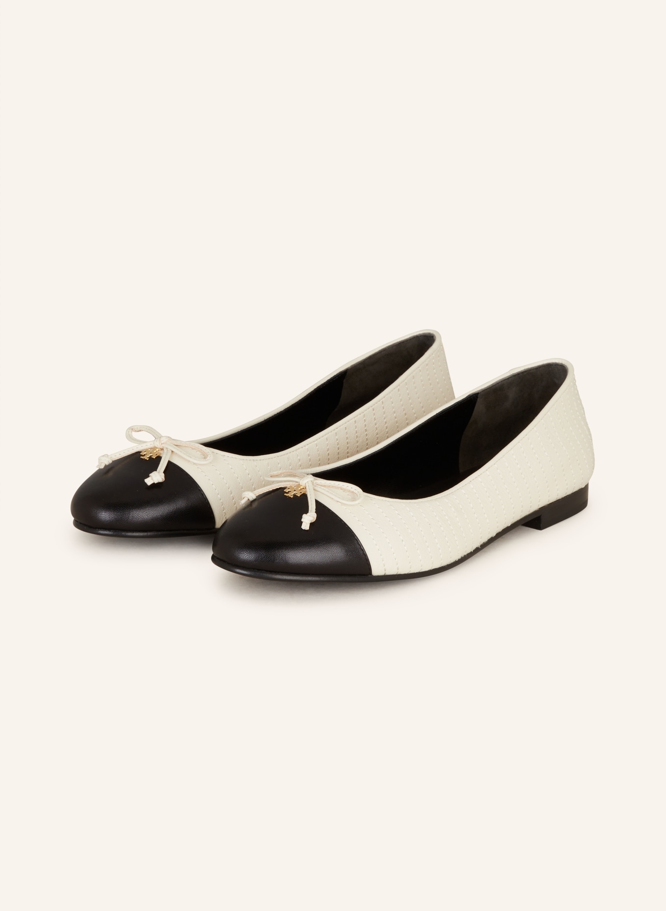 The iconic Tory Burch logo, which adorns the toe cap of these ballet flats, lends an instantly recognizable touch of sophistication and brand identity that elevates the design above the ordinary.